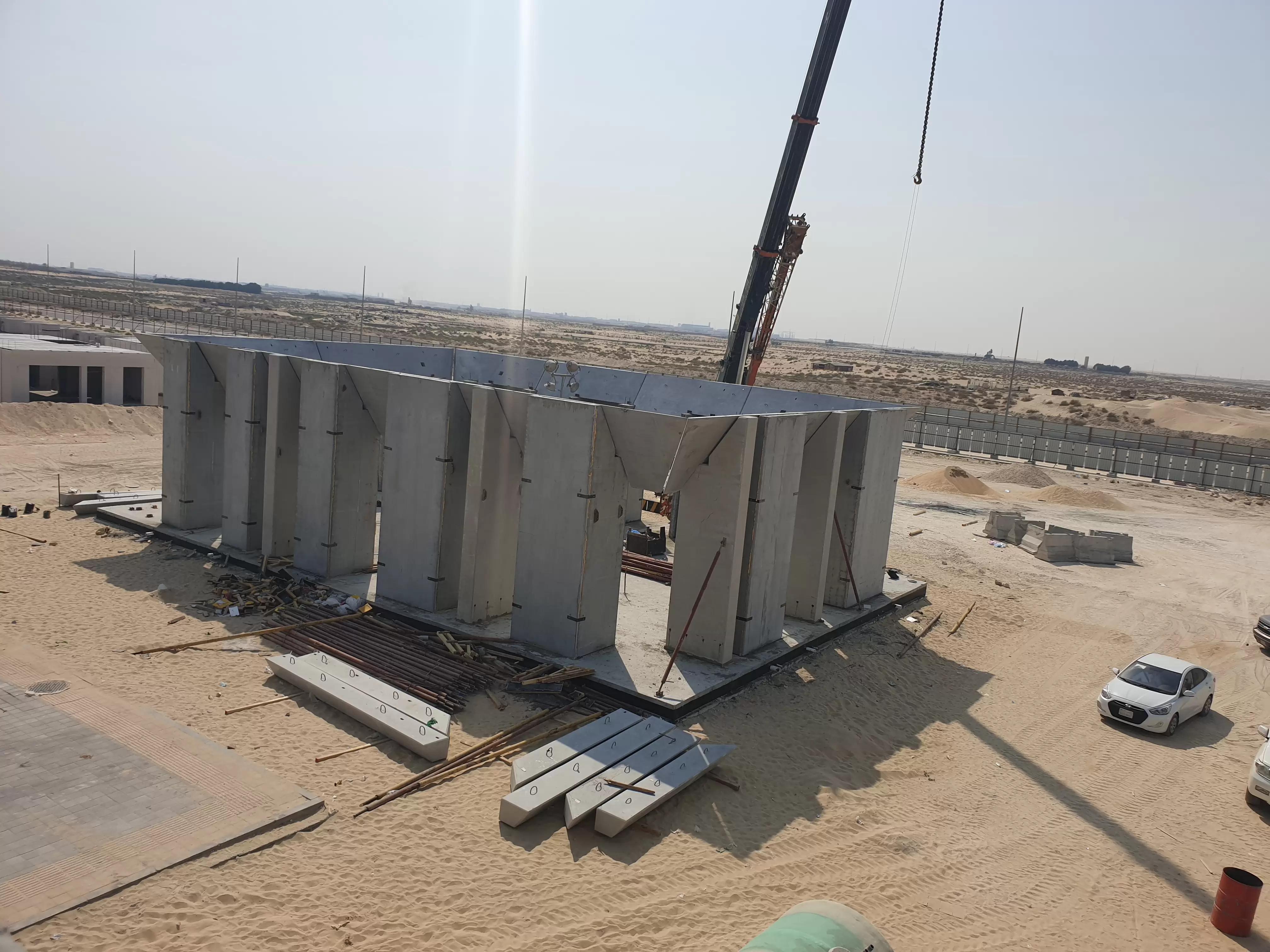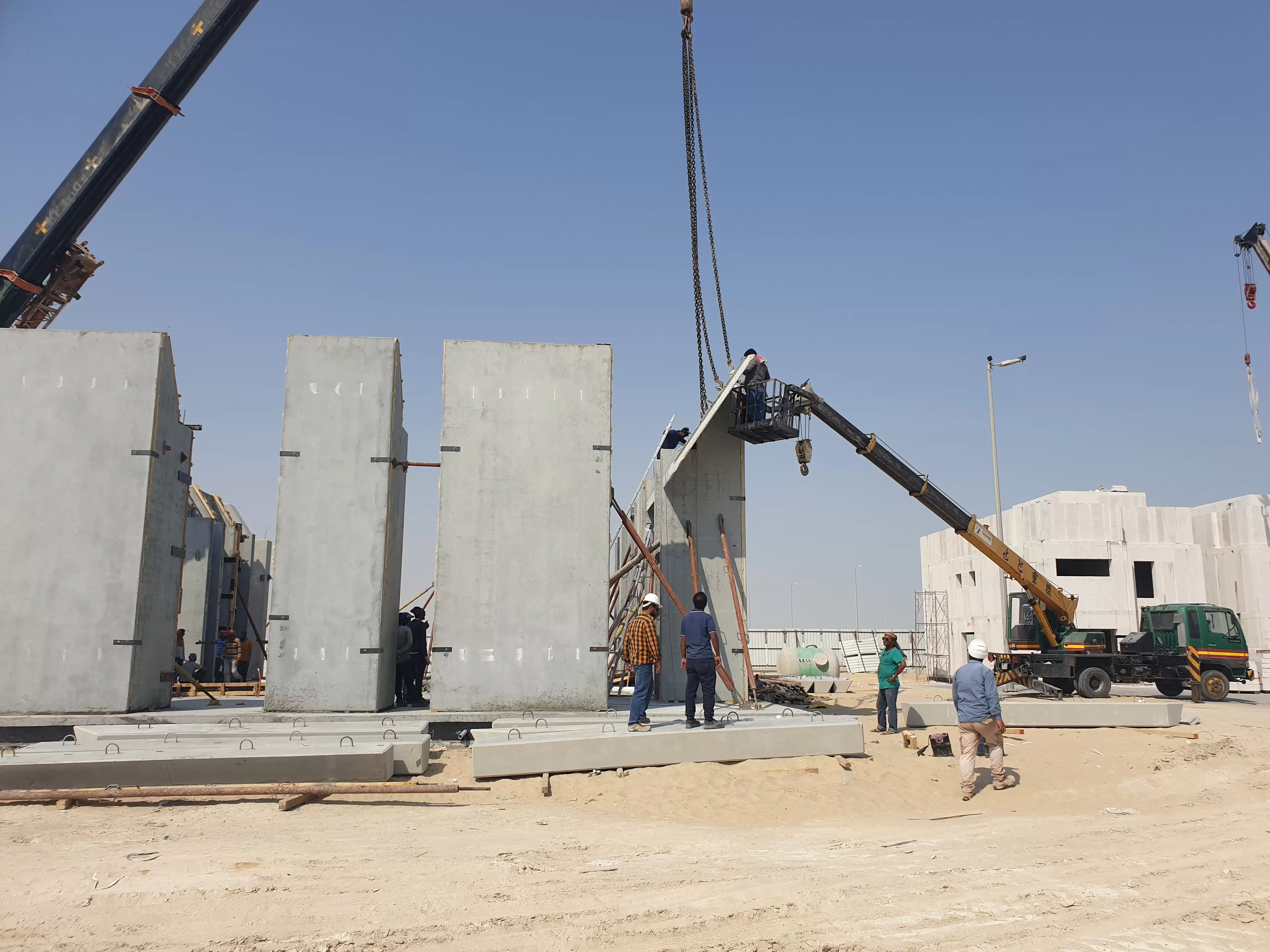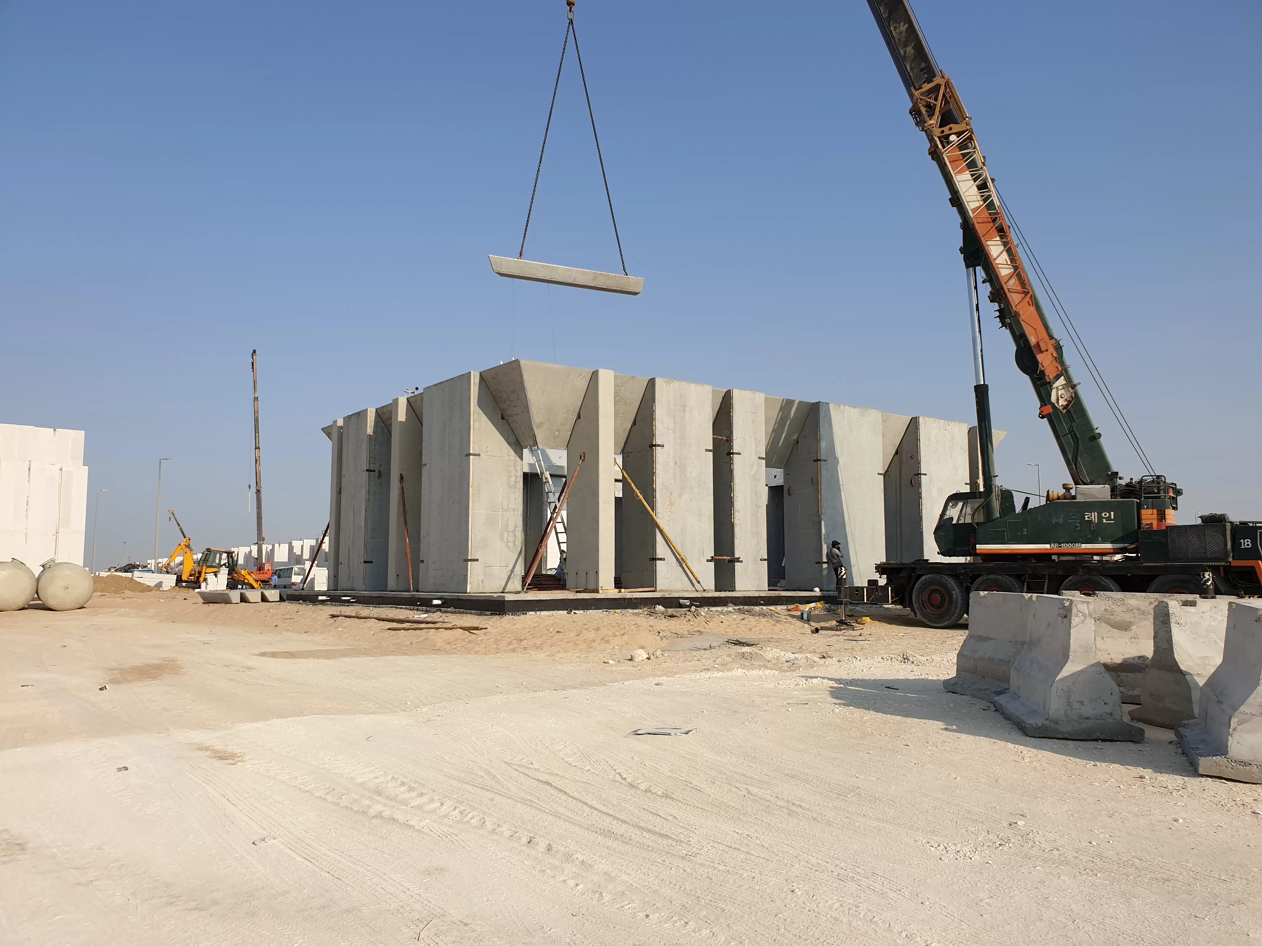 walls. The precast moment frame and precast stairs was designed, produced and installed by GDC, production was done using Jazeera precast factory, molds as well was designed and fabricated by GDC.