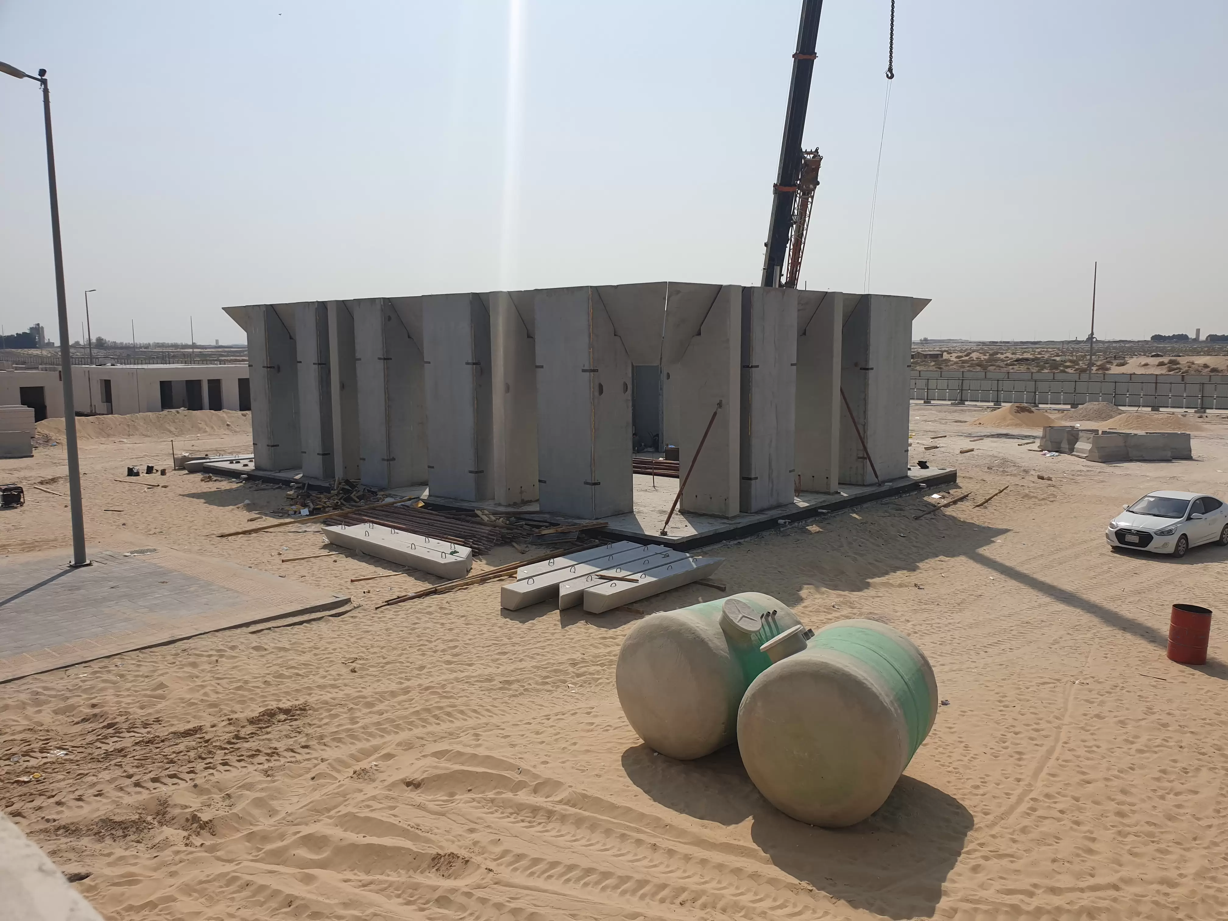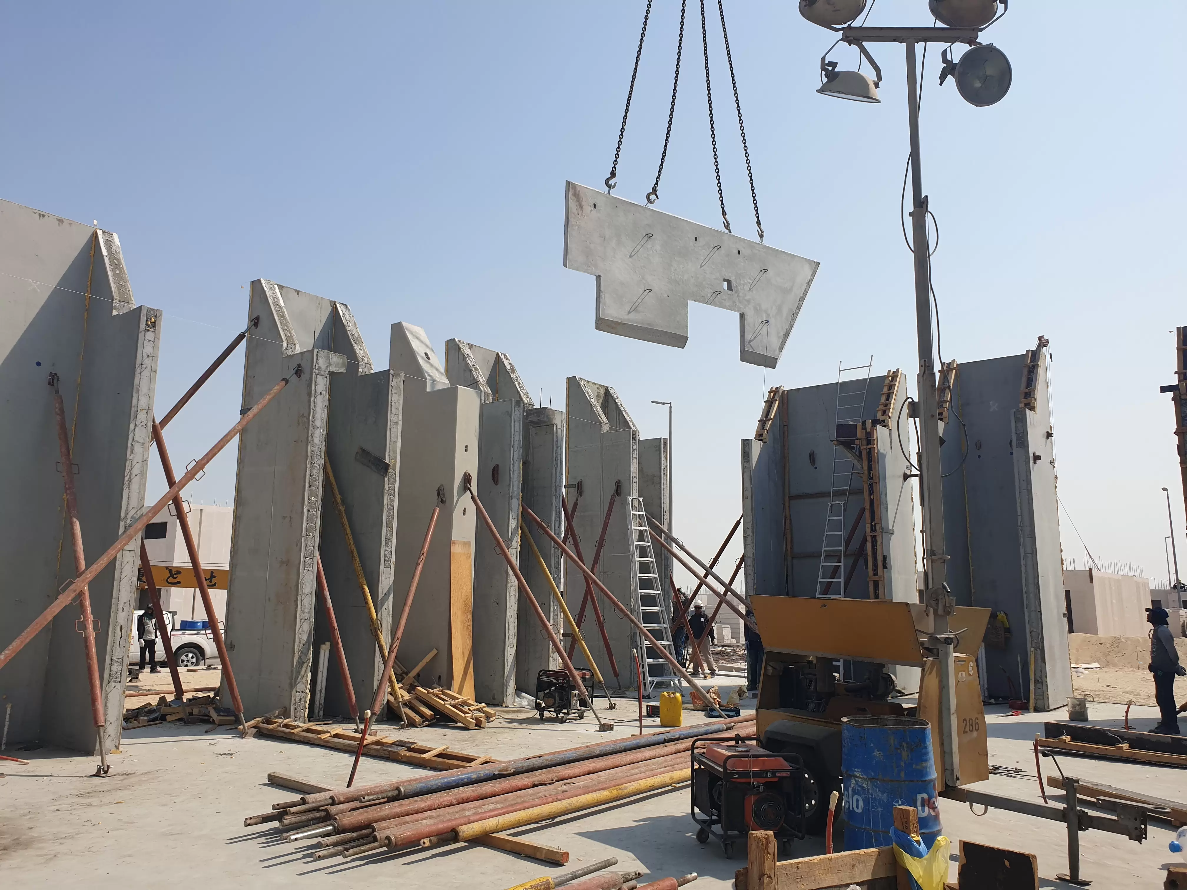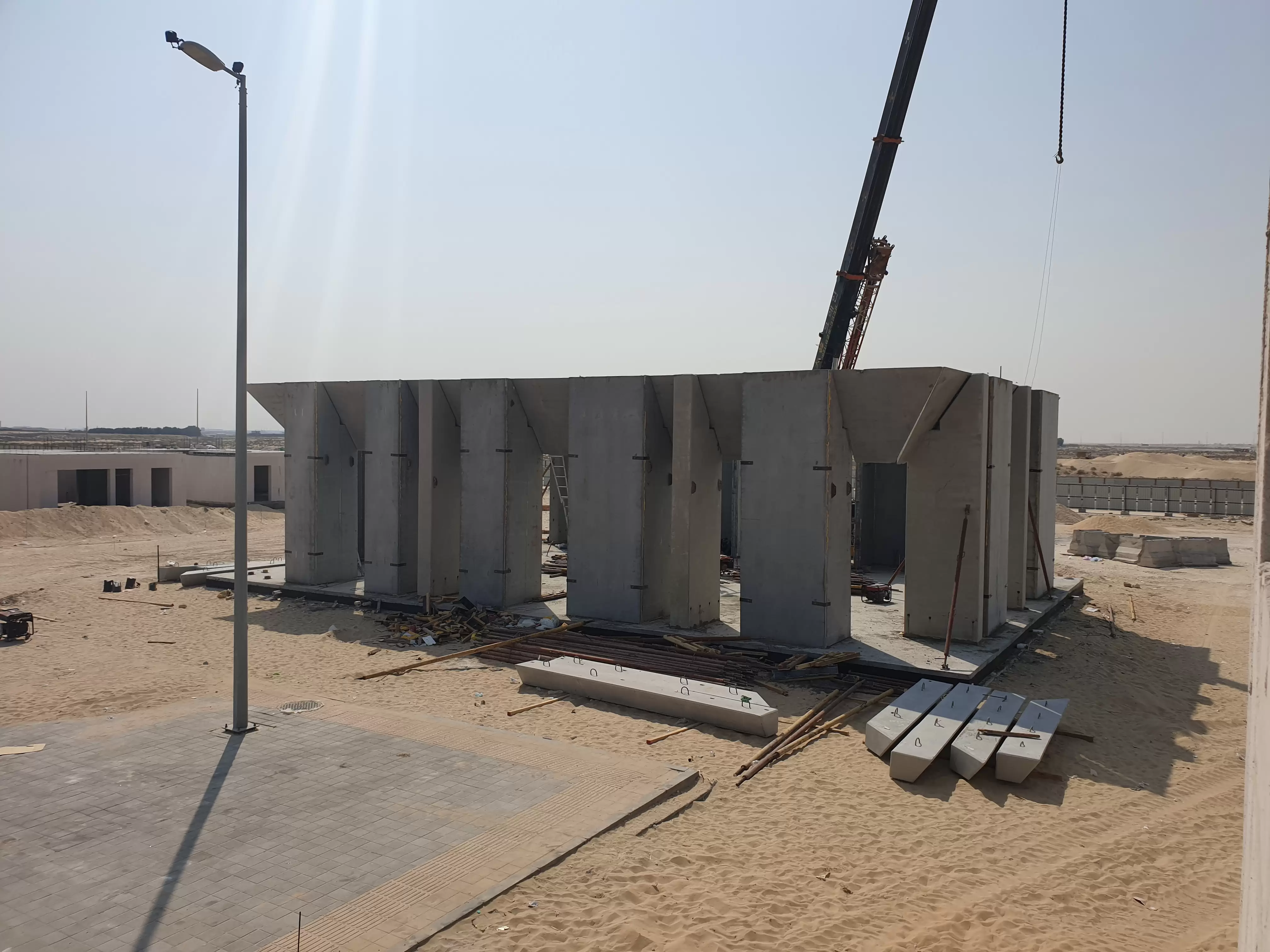 walls. The precast moment frame and precast stairs was designed, produced and installed by GDC, production was done using Jazeera precast factory, molds as well was designed and fabricated by GDC.